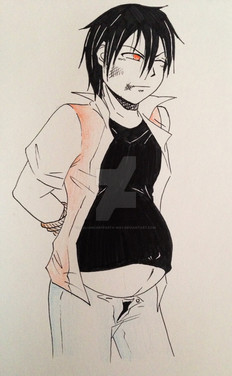 Drawn traditionally on paper with pencil, inked with pen and marker before colouring with felt a. Trust me, I would've colored his skin in completely. But the color I used as shading? Yeah that's the lightest skin shade I have. It'd ruin it if I colored it completely.