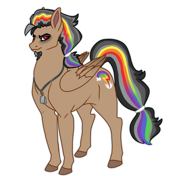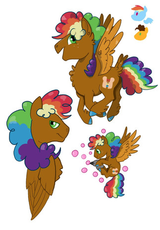 Once Quibble Pants and his daughter Rose Gold had settled in with Rainbow and her family, he felt much safer than before. Rainbow Dash & Soarin already had 3 foals of their own, yet he still felt something in his heart for Rainbow. He eventually maned up and told her about his feelings towards her, and to his surprise...she accepted them! Soarin was a bit uneasy at first about "sharing" Rainbow, but he came around quite quickly. Soon enough, Rainbow was once again pregnant with Quibble's foal.