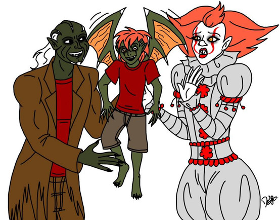 Mama Pennywise and his little....whatever the hell that thing is that he's got in that old ragged clothΒ ΒRelated content
