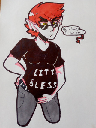 If he looks a bit different, first it was my first time drawing him and second, it's kinda morning sickness, so he's in PJs XDRequested by: