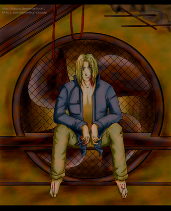Woo.. Britain's character Angelo! She writes such good stories X3.It was.. a pitiful try at a background. I think I'm just lazy.. would be the reason why they always turn out sad and blotchy. All my guys look the same too. ohyes, this was done for her art contests. Any gaians out there? you should visit the contest thread :3 (points to my gaia sig)