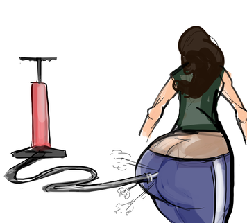 Is she about to inflate herself the one holding the hose