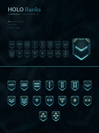 Rank badges with many variants and features, sliced and ready to be used in your app or game project.PSD File