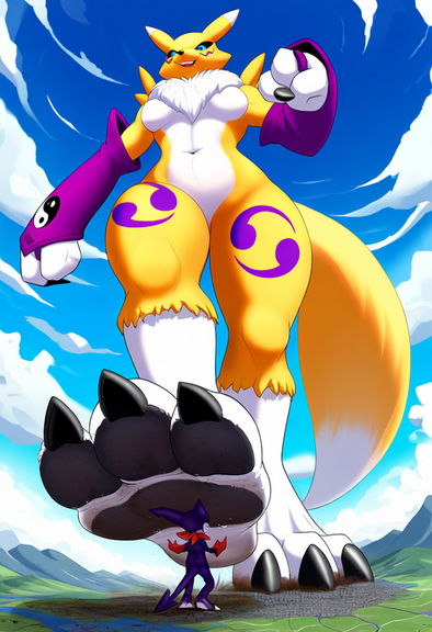 #anthro #buff #digimon #feet #furry #giant #giantess #macro #micro #muscular #paws #renamon #smoosh #stomp #toes #underfoot