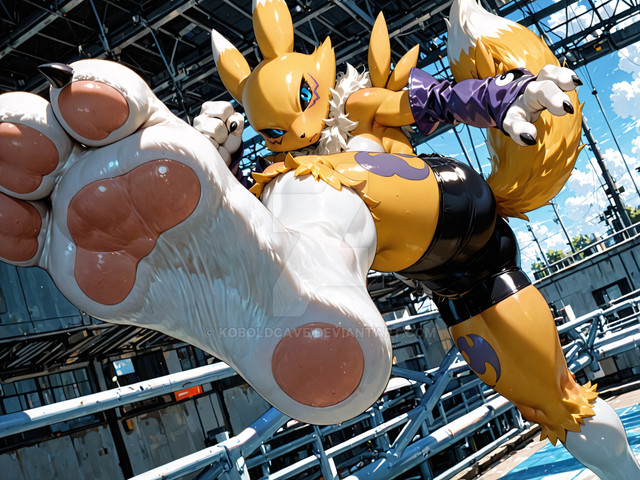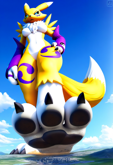 #anthro #buff #digimon #feet #furry #giant #giantess #macro #micro #muscular #paws #renamon #smoosh #stomp #toes #underfoot