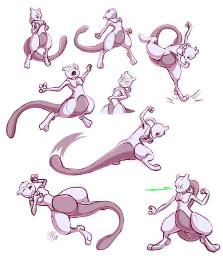 Having a lot of Mewtwo on my mind lately so I'd thought about sketching a picture and I ended up drawing the big one in the middle. Took a different approach to his whole anatomy, making it more simpler. Then I wanted to play with him, so I started to sketch Mewtwos in different poses around the big one. It's good practice and I like the results.I just really love Mewtwo. If I were a Pokemon, I'd be definately one. I wouldn't even care about the whole psychokinesis thing or any other special ability, I just want that body. I'd be a lame Mewtwo without any abilities but I'd be a really happy one!