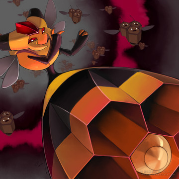 this is terryifing in the best way. zatu was always goofty to me but now he looks creepy-threataning. love the shade of pink used, to signify his psycic abilities and also that they dont subtract from me looking at xatu. The pokemon is still the focus even with such a strange and cool background,.