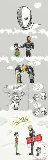 jsut a lil crappy comic i madei cant remeber what the fuck slade says.. seroiusly they need to bring bakc teen titans to england its bin too long!