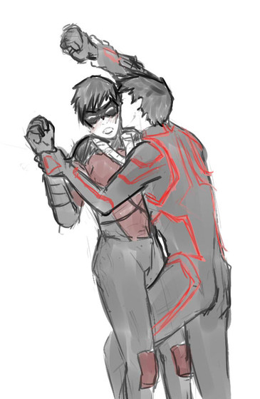 Love, love, LOVE this picture... but question.. where can I find a royxdick / speedyxrobin / red arrow x robin / speedyxnightwing / red arrowxnightwing fanfic?