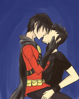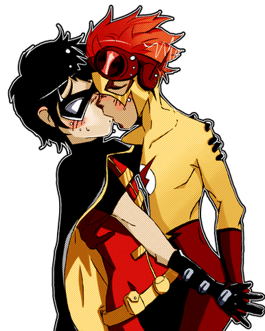 Oh yes!!! xD OTP! Robin is easily jail bait, running around in tights at 13 years old. And my mind is an endless tunnel of perversion...Anywho, thank you for making this drawing *___* Kyaa Roy/Dick is one of my favorite Slash pairings. So pretty <3