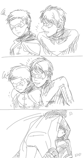 Speedy is grabbing Robin's man boobs! *shot* Well I like this more realistic style too~