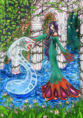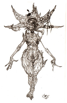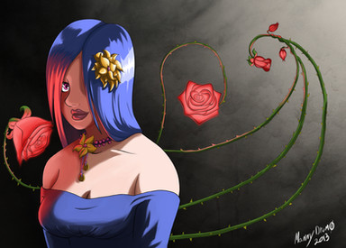 I'm quite sure that it's the hair, more specifically, I think, the color and how it's parted but with that light complexion this reminds me of Sally from Tim Burton's The Nightmare Before Christmas. I think that this is a beautiful piece full of tremendous detail, how it has gone without comments before now I'm not entirely sure. I think that it's very lovely and would like,if you care to share, more detail about what this work is about.