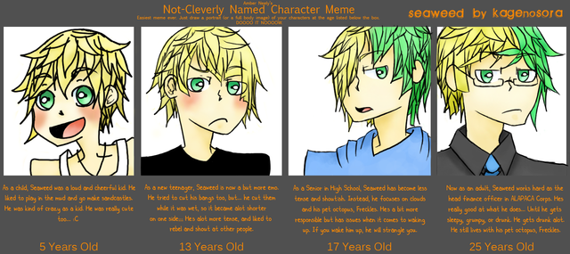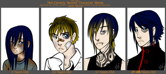 An age meme for my RP character, Rinoa. Her hair is such that it gets darker as she ages, which means by the time she's in her 40's it will be a very dark brown. Her eyes are the opposite, and are getting lighter with age.