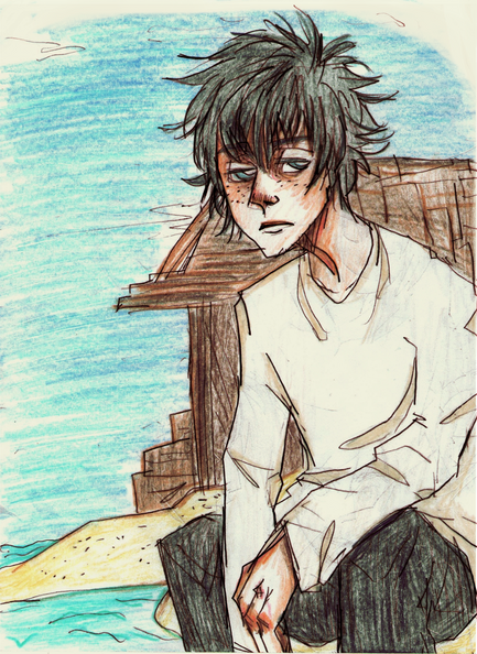 Just a posture I wanted to try..some things didn't work out as I wanted, like his arms and hands.But the colours came out nice and he looks kinda emo
