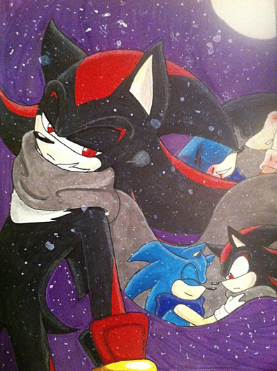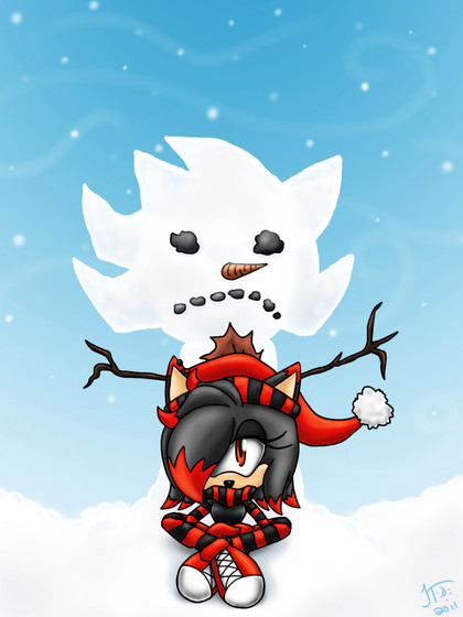 It came out beautifully! I love the snow effect-I always messed up on that. And the snowman is just adorable~ I always thought Shadow would make a very grumpy snowman. Or a Maria snowman. XD