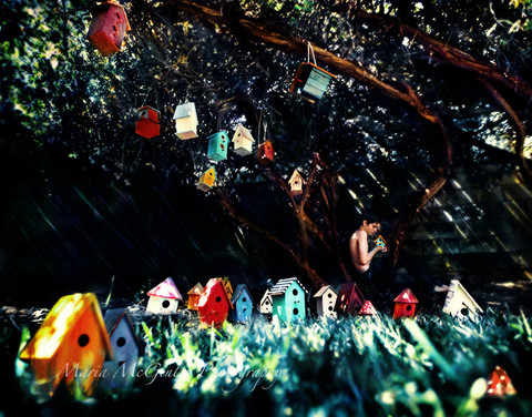 It's not perfect, but I'm tired of looking at it.Hand painted birdhouses and Timmy.