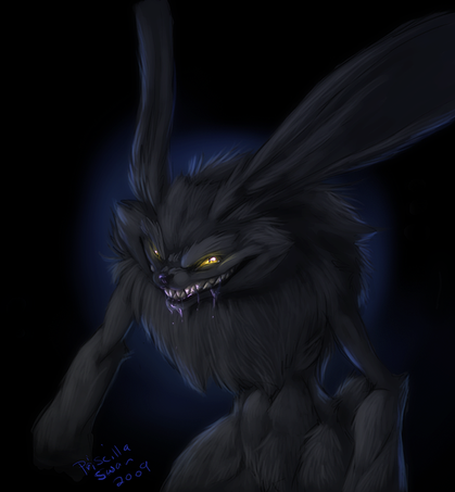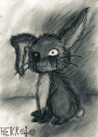 Just watched Watership Down the other night, hadn't experienced it or the book as a kid. I can definitely see how that movie could traumatize kids, there's a lot of freaky images with dying bunnies and blood. What weirded me out was the spectre of the Black Rabbit of Inle, the grim reaper of the bunnies. He was just a silhouette with red eyes in the movie, but I thought it'd be neat to draw from our vision of the grim reaper with the skull-head. I don't normally do that kind of thing, so it was a fun exercise.Sorry if it's really dark, I wanted it to be super-shadowy!