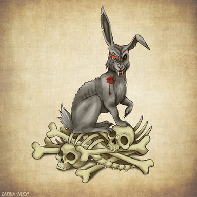 I love your verson using the skull on a black rabbit. The red moon background helps give the image more atmosphere.