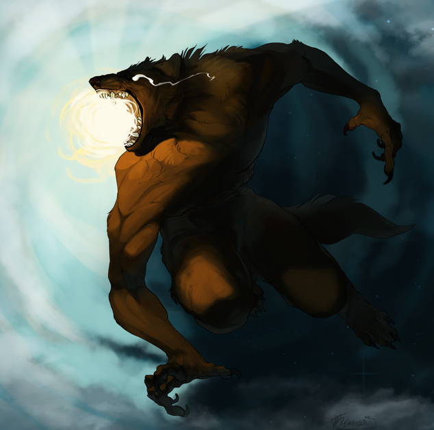 My character Rhea in our tabletop game has a condition of nanite-induced lycanthropy. At least once a month for several nights, Rhea goes through a painful transformation that turns her into an inky black wolf-predator-like being bent on hunting and eating. The idea was "a werewolf designed by someone who's only ever seen Alien and Pacific Rim."Related content