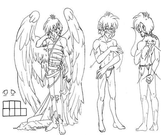 I figure his shirts can either hook over the top, or some of the heaver ones will likely have buttons below the wings, and probably panels down the middle to keep his back warm. Eh *shrug* I just like thinking up ways to make fantastic things work logically :3