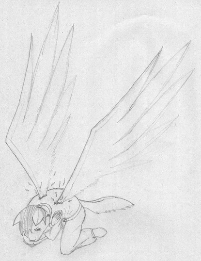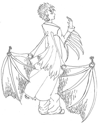 Oooo, cool! It makes me happy to see wings that look like, well, WINGS instead of those doofy fake wings people usually give angels, that attach to the back at one point. Very nifty. ^^
