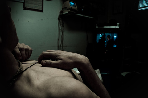 This is amazing. The use of color and the rough texture of the background in comparison to his skin, just amazing!