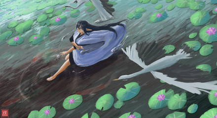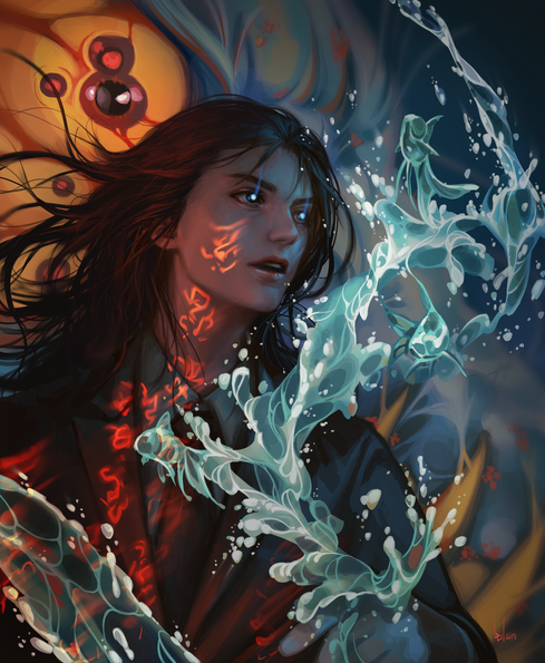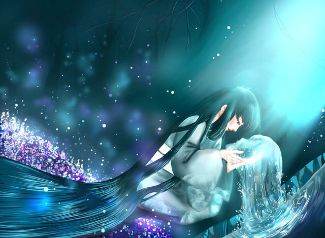 #anime #artwork #blue #digital #digitalart #digitalartwork #draw #drawing #fantasy #feathers #magic #water #art #blueeyes #flowers #green