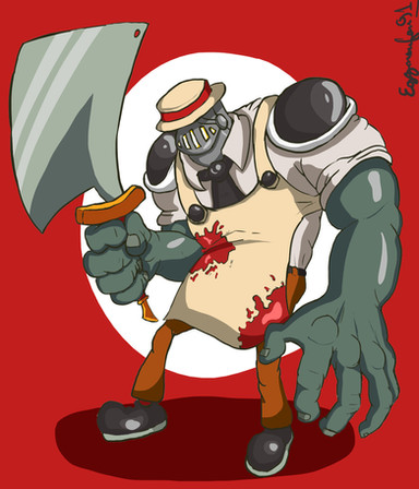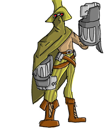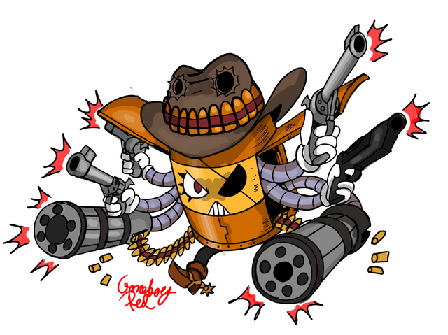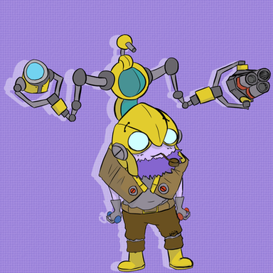 Damaged during a train heist, this bot was marked for the scrap heap. The damage to his cpu caused him to become self aware and a little nuts. He bolted on out of that scrap pile and joined the lifestyle that freed him from his former existence.Just a quick sketch of a miniature I want to make for Rail Raiders board game. Now I just need to find someone that 3D models.