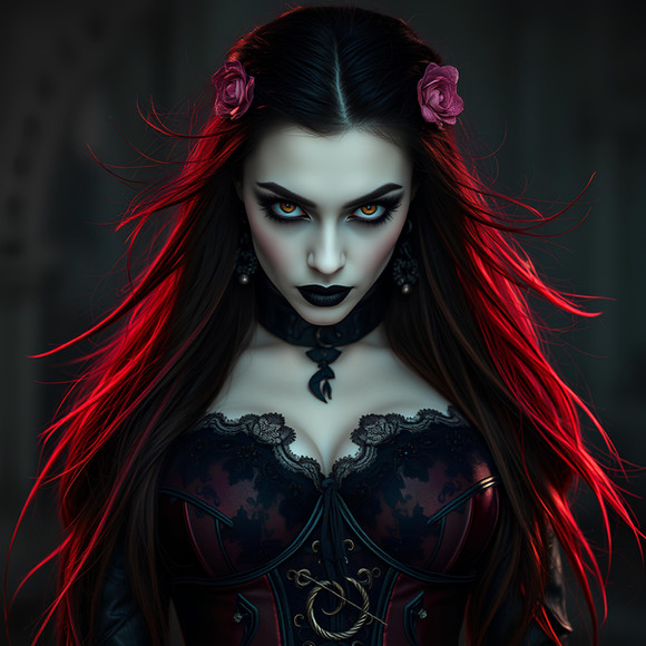 #portrait #darkbeauty #digitalportrait #gothicart #gothicqueen #ravenhair #redandblack #tattooart #darkfantasyart #gothstyle #roseandthorns #mysticcharm #alternativebeauty #neogothicstyle #gothicglam #darkaesthetic #elegantdarkness #vampirevibes #evleus #chicandgothic