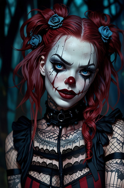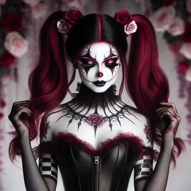 #digitalart #clown #drama #portrait #baroque #burlesque #carnival #dollface #fantasy #freaky #gothic #makeup #mystic #roses #surreal #tattooed #whimsical #clowncore #evleus