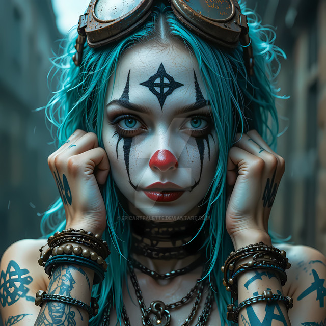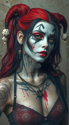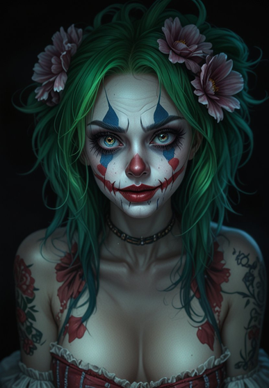 #digitalart #portrait #baroque #burlesque #carnival #dollface #drama #fantasy #freaky #gothic #makeup #mystic #roses #surreal #tattooed #whimsical #clowncore #evleus