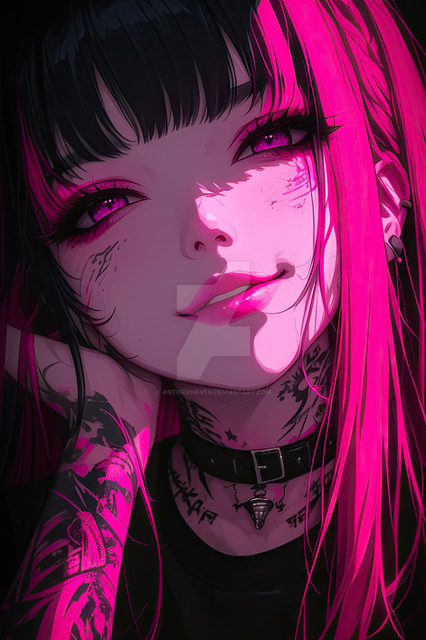 #digitalart #portrait #chains #cutezilla #fierce #grunge #neon #playful #punkette #rebel #smile #spiked #tattooed #vibe #altgirl #pinkcore #evleus #bratzpunk