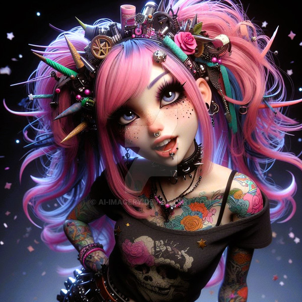 #digitalart #portrait #chains #cutezilla #fierce #grunge #neon #playful #punkette #rebel #smile #spiked #tattooed #vibe #altgirl #pinkcore #evleus #bratzpunk