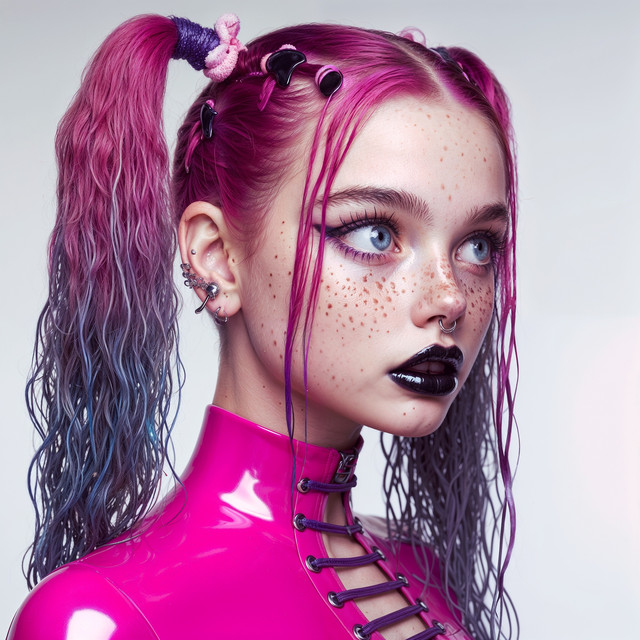 #digitalart #portrait #chains #cutezilla #fierce #grunge #neon #playful #punkette #rebel #smile #spiked #tattooed #vibe #altgirl #pinkcore #evleus #bratzpunk