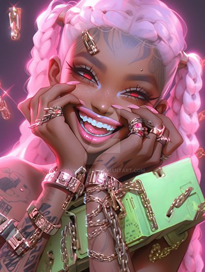#digitalart #portrait #chains #cutezilla #fierce #grunge #neon #playful #punkette #rebel #smile #spiked #tattooed #vibe #altgirl #pinkcore #evleus #bratzpunk