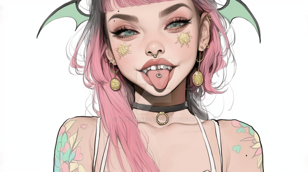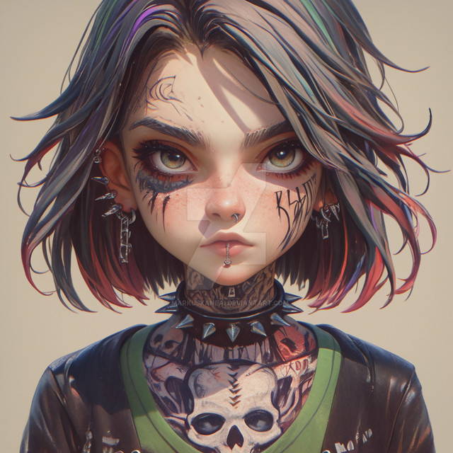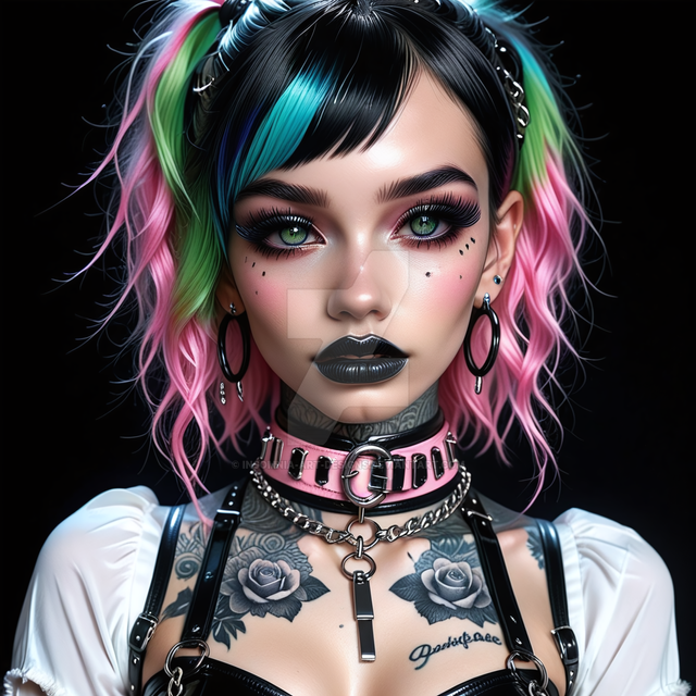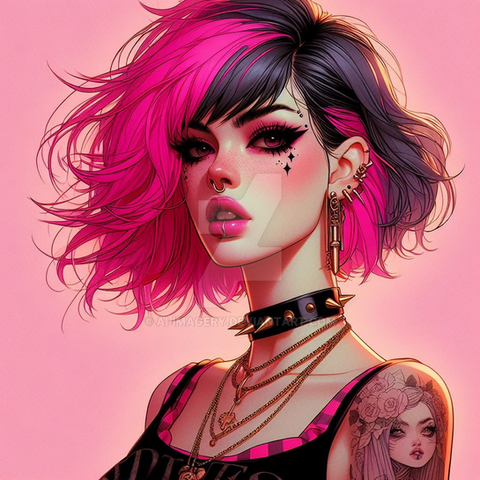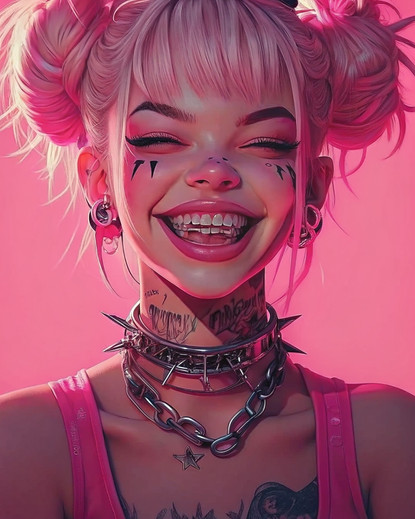 #digitalart #fanart #portrait #chains #cutezilla #fierce #grunge #neon #playful #punkette #rebel #smile #spiked #tattooed #vibe #altgirl #pinkcore #evleus #bratzpunk
