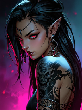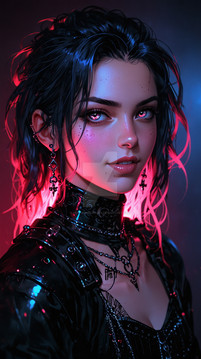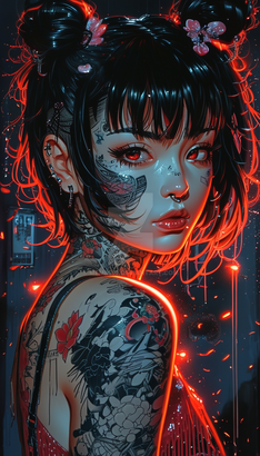 #digitalart #portrait #cyberpunk #aesthetic #darkbeauty #darkgirl #edgy #nightmode #rebellion #tattooart #altstyle #altgirl #gothcore #redmood #neonblood #vibeart #evleus