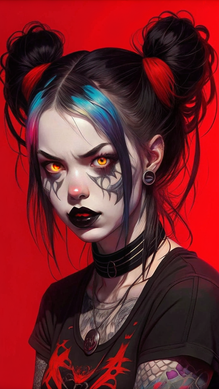 #digitalart #characterdesign #portrait #videogamefanart #aesthetic #cyberpunk #darkbeauty #darkgirl #edgy #nightmode #rebellion #tattooart #altstyle #altgirl #gothcore #redmood #neonblood #vibeart #evleus