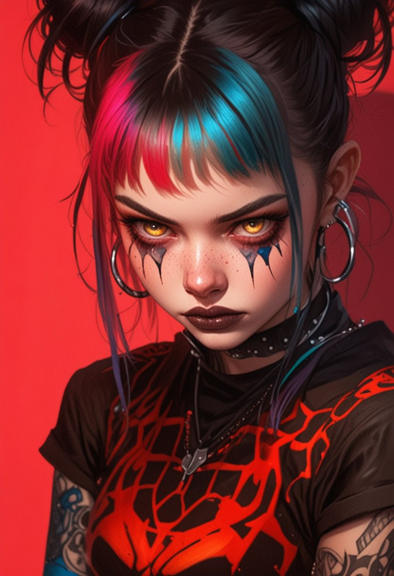 #digitalart #portrait #aesthetic #cyberpunk #darkbeauty #darkgirl #edgy #nightmode #rebellion #tattooart #altstyle #altgirl #gothcore #redmood #neonblood #vibeart #evleus