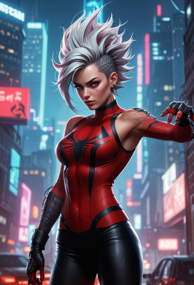 #fanart #marvelcomics #spiderman #cybergoth #digitalpunk #glitchcore #grungeart #portrait #punkart #spiderpunk #cyberspider #edgeart #neonnoir #synthwave #rebelart #neonhorror #darkfuturism #evleus #aicreepy #altspider