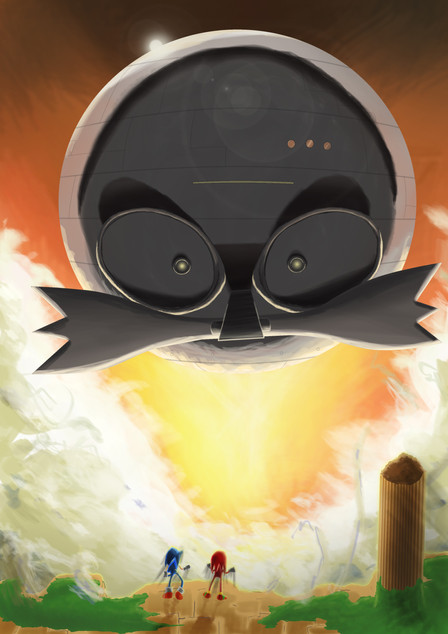 As for this piece. The angle is tricky, but I think you pulled it off. Them being offset by the looming Death Egg in the BG really gives of the "impending doom" feeling especially with the dimensions you used (I love taller works).