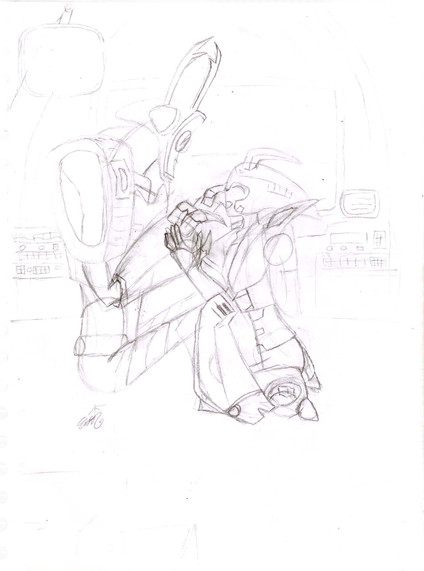 An Art Trade for . She asked for SkyfireXstarscream, so here it isI want to experiment with new positions, but I can't because, man, Skyfire is a tough mech to draw!!!! This is my first time drawing him...Still, I hope she'll like it turns out.