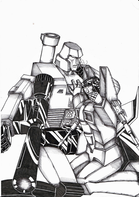 Your lines are so clean and beautiful. I love the way you have drawn his crest here. And thought you may not have the comic, and the patterns may not be as accurate as the originals, you still made this amazingly well. You can find the comic online I believe somewhere on Photobucket if you wish to see the design again. But honestly, it doesn't matter here, because you did an amazing job. I would just die to see an intimate picture like this with Megatron and Shockwave.