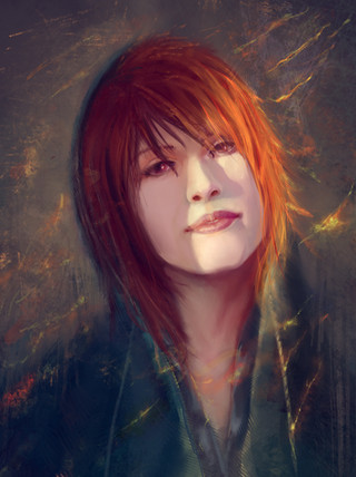I love this!! The combination of fire and ice blends in well in this painting. I love her eyes, they have this far away look. I also like how vibrant her hair is and how it glows upon her face. It's simply gorgeous. Definitely a of mine for sure.