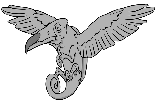 Humlizards are small flying lizards with hummingbird wings and feathered tails, a feathered crest and a colourful neck frill. Their bodies can be any colour, but their head crest (bling) and neck frill should stand out from the rest of the body. You make the lizard's body any kind of small (anole/gecko) to medium (iguana/chameleon) lizard found in nature. No really large lizards (komodos/asian water monitors/goannas/etc.) or dinosaurs please.They have long claws on the front feet like a velociprator, also known as the "business end", two nostrils, and a sail-like fin on the back.