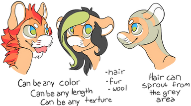Areas from which short hair can sprout is shown in grey on the third example.