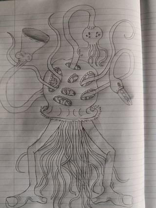 This looks a lot like a drawing of Oscar the artificially created living Oregon look it up on YouTube pretty crazy but your drawing looks like him
