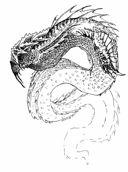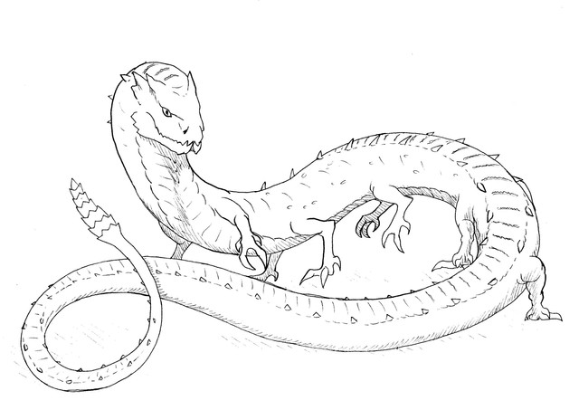 I love the Basilisk. The whole gaze-and-die thing, compounded with it being a snake has it sold for me. Most Basilisk I see are either large, elegant snakes, or some bird/snake hybrid. What got me was some old drawing of a basilisk that had it as some multi-legged, humped back, bird-snake thing. It was ugly, ungraceful, weird and perfect. So I took some ideas from that, along with crown. The whole eye-on-tongue thing was something I just wanted to give the Basilisk, some extra weird thing to go with it.