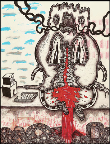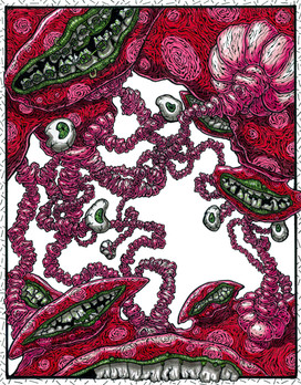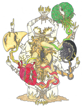 This is what happens when you glance at a piece of art from too far away and without your glasses on, then try to remember what it was you saw in the blurs. Mine interpretation just happens to be this. BLAAAAAAAAAAAAAAAAAAAAARGH
