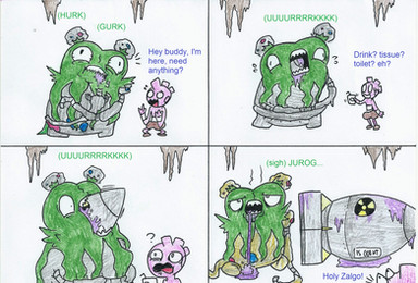 it's indeed been a while since you've drawn a comic, and it's looking really nice! the background looks pretty sweet and i got a good laugh out of the joke. I love Telnus scratching his helmet and Trash Knight just being himself. Great job, man!